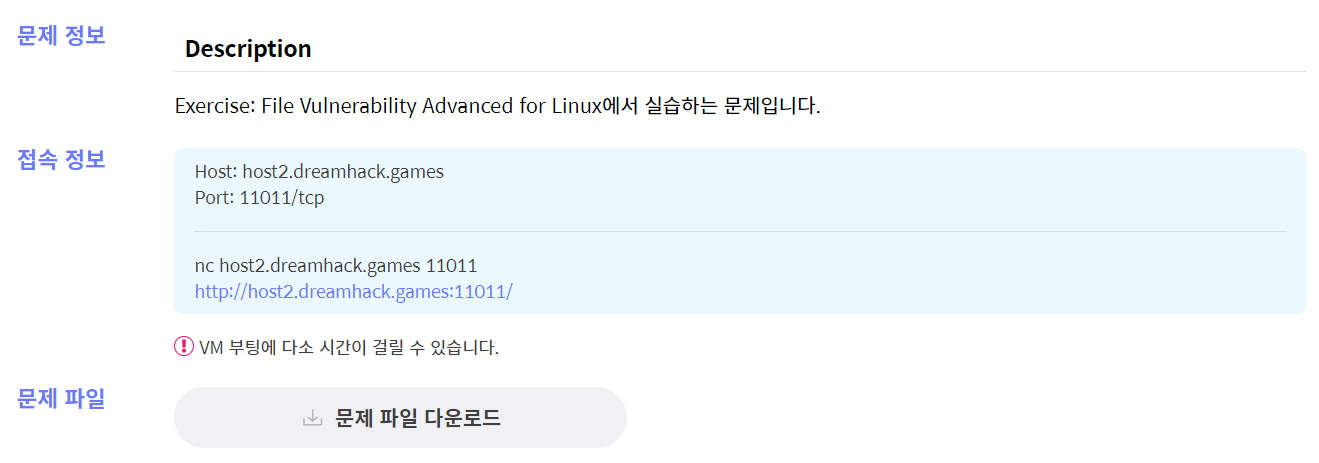 Description Exercise: File Vulnerability Advanced for Linux에서 실습하는 문제입니다.