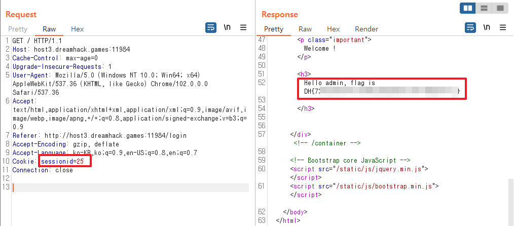 쿠키와 세션으로 인증 상태를 관리하는 간단한 로그인 서비스입니다. admin 계정으로 로그인에 성공하면 플래그를 획득할 수 있습니다. Reference Background: Cookie & Session